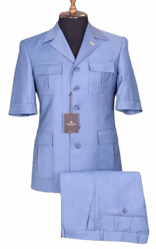 Safari Suit Fernando Bleu Ciel Lane Biella – Costume Saharien